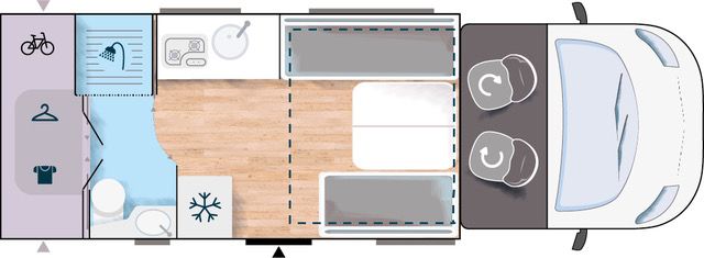 - Optionales Hubbett über der Sitzgruppe für zwei zusätzliche Schlafplätze