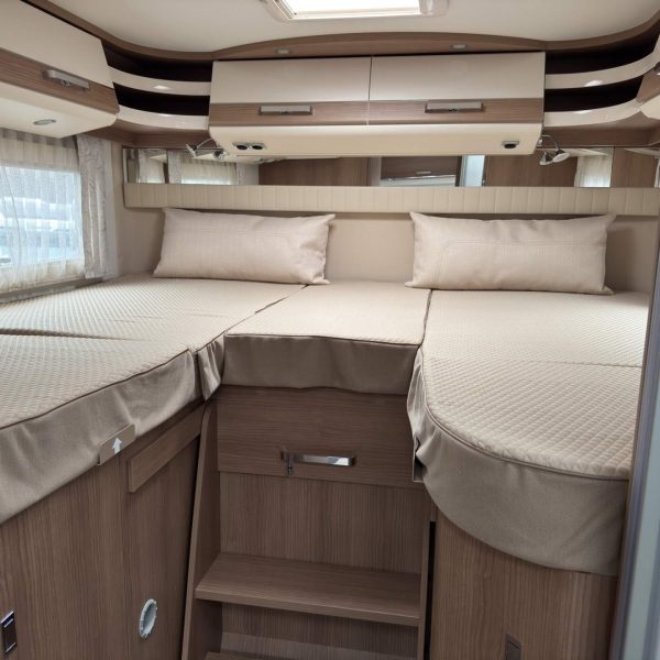 - Betten: Längs angeordnete Einzelbetten im Heck, bis zu 2 Meter lang, die zu einer großen Liegefläche erweitert werden können.