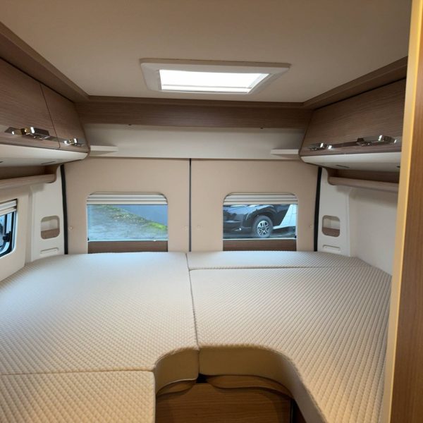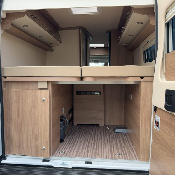 - Betten: Zwei Einzelbetten im Heck, die zu einer größeren Schlaffläche kombiniert werden können.